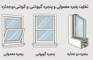 تفاوت پنجره معمولی و پنجره گیوتینی و پنجره دو جداره